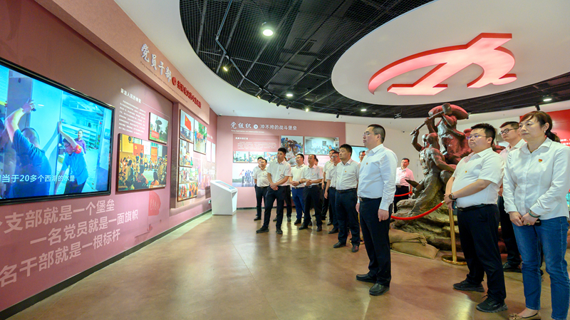 在調(diào)研交流環(huán)節(jié),全體人員先后參觀了項目預(yù)制梁場、阜南南互通施工現(xiàn)場,實地查看了項目標(biāo)準(zhǔn)化建設(shè)、安全文明施工和技術(shù)工藝運用情況,并在項目會議室圍繞推動黨建生產(chǎn)深度融合、加強(qiáng)人才隊伍建設(shè)和深化項目基礎(chǔ)管理等方面開展了座談交流。在參觀踐學(xué)環(huán)節(jié),全體人員來到被稱為“千里淮河第一閘”的王家壩閘,重溫習(xí)近平總書記考察安徽重要講話指示精神。在講解員的帶領(lǐng)下,大家通過觀看《王家壩紀(jì)錄片》和參觀王家壩抗洪紀(jì)念館內(nèi)的7個展廳,全面了解蒙洼群眾的抗洪歷史,深入領(lǐng)會王家壩精神的豐富內(nèi)涵。