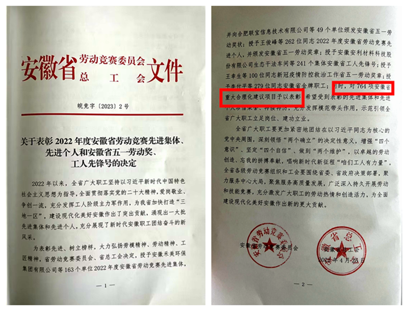 近日,安徽省總工會(huì)2022年度重大合理化建議評(píng)選活動(dòng)結(jié)果公布,公司43項(xiàng)成果獲省重大合理化建議,為公司五年來獲此榮譽(yù)之和,是安徽建工集團(tuán)2022年度獲省級(jí)合理化建議最多的二級(jí)單位。