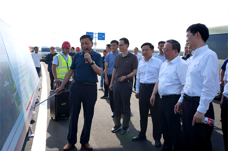 6月9日,安徽省交通運輸廳黨組書記、廳長聶愛國赴公司承建的六安G237金舒大道一期項目調(diào)研指導工作。六安市委副書記、市長潘東旭,省交通運輸廳有關部門負責同志,六安市交通運輸局黨組書記、局長朱宏,公司黨委書記、董事長錢申春等參加調(diào)研。