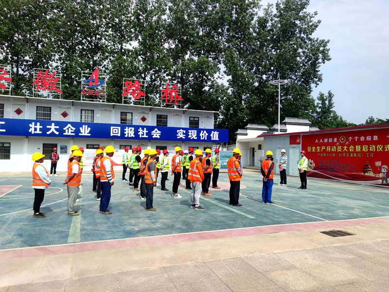 項(xiàng)目部堅(jiān)持一手抓安全、一手抓生產(chǎn),以“兩不耽誤、兩相促進(jìn)”為宗旨,加大宣傳力度,力爭實(shí)現(xiàn)“1+1>2”的效果。6月1日,項(xiàng)目部聯(lián)合霍邱縣交通局舉行了安全宣誓暨全國安全月活動(dòng)啟動(dòng)儀式,參觀安全月主題圖片展、學(xué)習(xí)安全生產(chǎn)相關(guān)知識特別是安全生產(chǎn)“八安八險(xiǎn)”等內(nèi)容,監(jiān)理單位、項(xiàng)目管理人員、勞務(wù)隊(duì)伍代表等30余人還進(jìn)行了安全生產(chǎn)集體宣誓。5月,項(xiàng)目部組織召開勞動(dòng)競賽啟動(dòng)儀式,結(jié)合項(xiàng)目進(jìn)度制定了競賽活動(dòng)方案并及時(shí)宣貫、展開討論。同時(shí),在項(xiàng)目部及施工現(xiàn)場醒目位置懸掛橫幅23條,在公告欄張貼各班組施工進(jìn)度完成情況并動(dòng)態(tài)更新,營造勞動(dòng)競賽濃厚氛圍。設(shè)置安全圍擋及安全警示標(biāo)牌,保證進(jìn)度的同時(shí)落實(shí)安全制度。