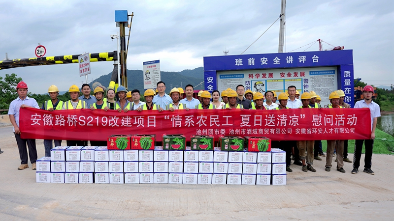 7月7日下午,共青團(tuán)池州市委書記寧睿到公司承建的S219青陽(yáng)改建項(xiàng)目開展團(tuán)的十九大精神宣講,并開展“送清涼”慰問活動(dòng)。