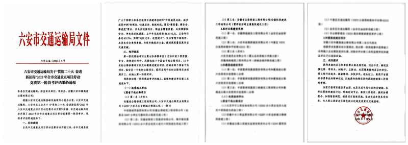 公司承建項(xiàng)目在六安市交通重點(diǎn)項(xiàng)目勞動(dòng)競賽考評中取得佳績