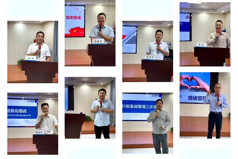 本次培訓(xùn)班課程由公司內(nèi)部培訓(xùn)師講授,課程設(shè)置方面注重以立足公司生產(chǎn)實(shí)際的真實(shí)案例進(jìn)行分析,旨在強(qiáng)化項(xiàng)目成本合約部長(zhǎng)必備的專業(yè)技能和職業(yè)素養(yǎng),具體包括項(xiàng)目成本策劃、合約部信息化操作、項(xiàng)目合同管理法律風(fēng)險(xiǎn)防范、合約部基礎(chǔ)管理、二次經(jīng)營(yíng)、紀(jì)檢專題培訓(xùn)、情緒與壓力管理等內(nèi)容。