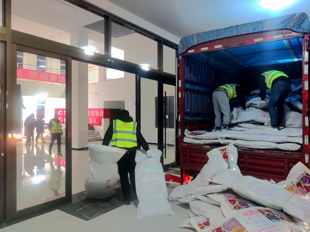 距積石山縣地震震中僅21公里的永靖縣劉家峽水庫楊塔鄉(xiāng)段環(huán)庫公路先后發(fā)生山體坍塌堵塞,嚴(yán)重阻礙交通出行。項(xiàng)目部在與當(dāng)?shù)卣〉寐?lián)系后緊急出動(dòng),第一時(shí)間趕往現(xiàn)場開展清掃工作,歷經(jīng)4小時(shí)作業(yè)將落石全部清理完畢,確保道路通暢。項(xiàng)目部所在的楊塔鄉(xiāng)勝利村部分房屋出現(xiàn)大裂縫,為保障村民人身安全,項(xiàng)目部主動(dòng)聯(lián)系有需要的村民到項(xiàng)目工人生活區(qū)進(jìn)行取暖和避險(xiǎn)。在得知積石山縣地震災(zāi)區(qū)缺少彩條布及篷布等緊急物資時(shí),項(xiàng)目迅速籌集采購彩條布、篷布共計(jì)50000平方米,并連夜送往災(zāi)區(qū)以備使用。