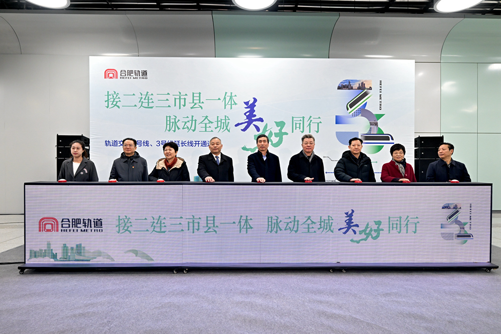 12月26日上午9時(shí),合肥軌道2、3號(hào)延長(zhǎng)線通車儀式在公司承建的軌道3號(hào)線南延線站前路站舉行。安徽省住建廳黨組成員、總工程師何以文,省發(fā)改委二級(jí)巡視員王永濤,省交通廳二級(jí)巡視員汪炳蘭,合肥市委副書記路軍,市人大副主任張業(yè)鎖,市政協(xié)副主席姚亞妹,市政府副秘書長(zhǎng)張義明,建工控股黨委副書記、總經(jīng)理、董事劉家靜出席通車儀式。上午10時(shí),公司參建的軌道3號(hào)線南延線正式開通運(yùn)營(yíng)。