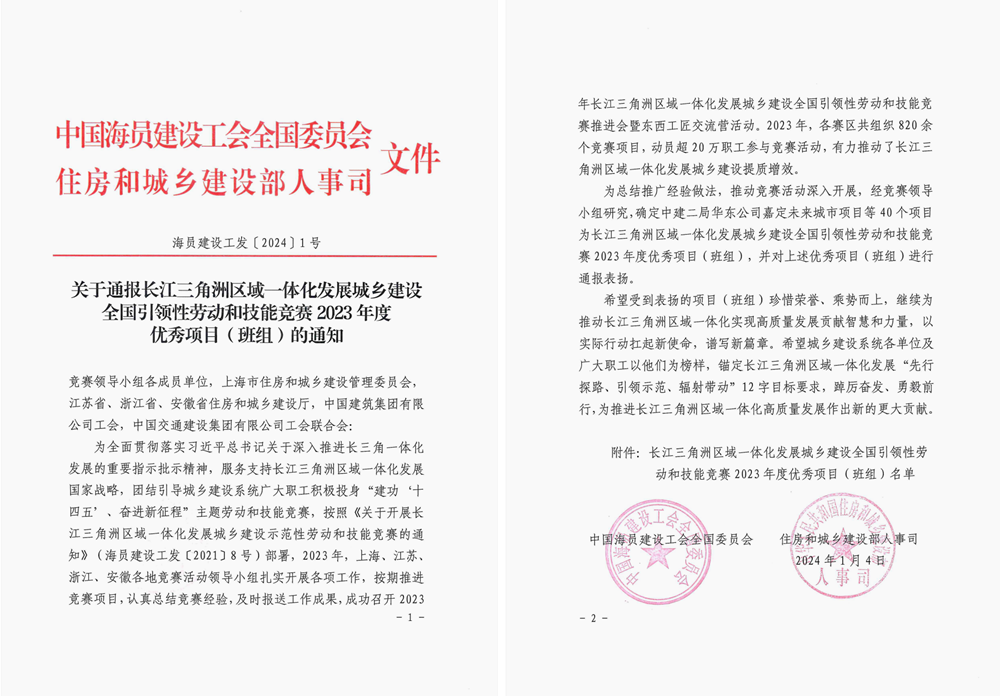 近日,中國海員建設(shè)工會和住建部人事司聯(lián)合公布長江三角洲區(qū)域一體化發(fā)展城鄉(xiāng)建設(shè)全國引領(lǐng)性勞動和技能競賽2023年度優(yōu)秀項(xiàng)目評選結(jié)果,公司桃花科創(chuàng)產(chǎn)業(yè)園EPC項(xiàng)目榜上有名。