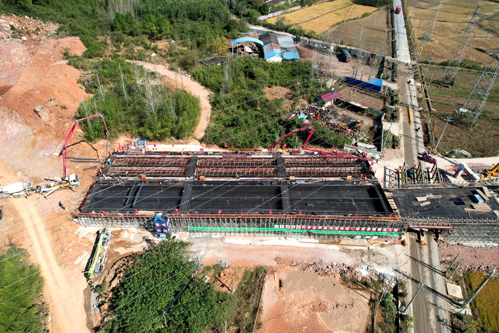 工程建設(shè)制勝在關(guān)鍵點,項目部始終堅持把關(guān)鍵節(jié)點工程攻堅作為“頭號工程”。水東四號橋位于象山腳下,橫跨鄉(xiāng)道施工,施工組織難度大,安全風(fēng)險高。項目積極組織工作專班,通過優(yōu)化方案、細(xì)化分工、倒排工期和現(xiàn)場監(jiān)督等措施,并積極對接當(dāng)?shù)卣陀嘘P(guān)電力部門,多番實地考察、測量,保障施工過程的有序性、高效性和安全性。2023年11月8日上午,水東四號橋首件現(xiàn)澆梁順利澆筑完成,標(biāo)志著項目關(guān)鍵施工節(jié)點取得突破性進展。
