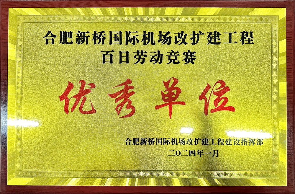 近日,從合肥新橋機場改擴建工程項目指揮部傳來喜訊,公司承建的合肥新橋國際機場綜合交通中心項目榮獲“合肥新橋國際機場改擴建工程百日勞動競賽優(yōu)秀單位”,公司黨委委員、副總經(jīng)理韋秀剛代表公司領(lǐng)獎。