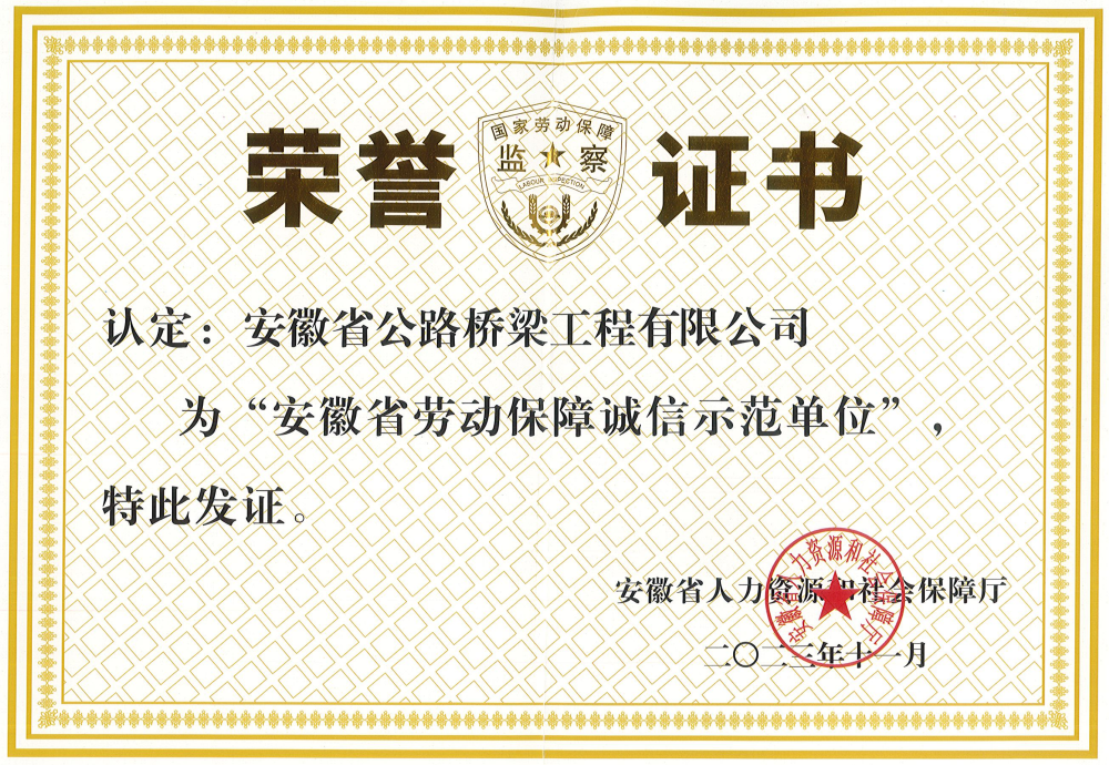 近日,省人力資源和社會(huì)保障廳公布2023年安徽省勞動(dòng)保障誠(chéng)信示范單位名單,公司獲此殊榮。