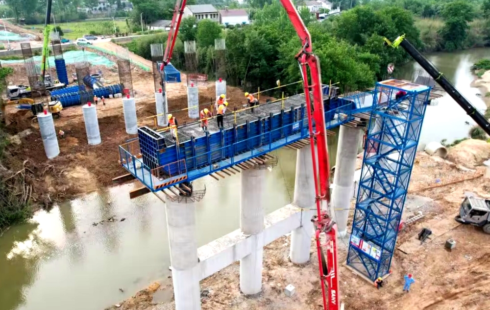 蕪湖正值梅雨季節(jié),面對青弋江日漸上漲的水情和項目趕在汛期高峰期到來前完成主墩出水的任務(wù),S334峨山路東延伸新建二期工程項目全體職工和參建班組堅守在施工現(xiàn)場第一線,持續(xù)高效推動項目建設(shè)。