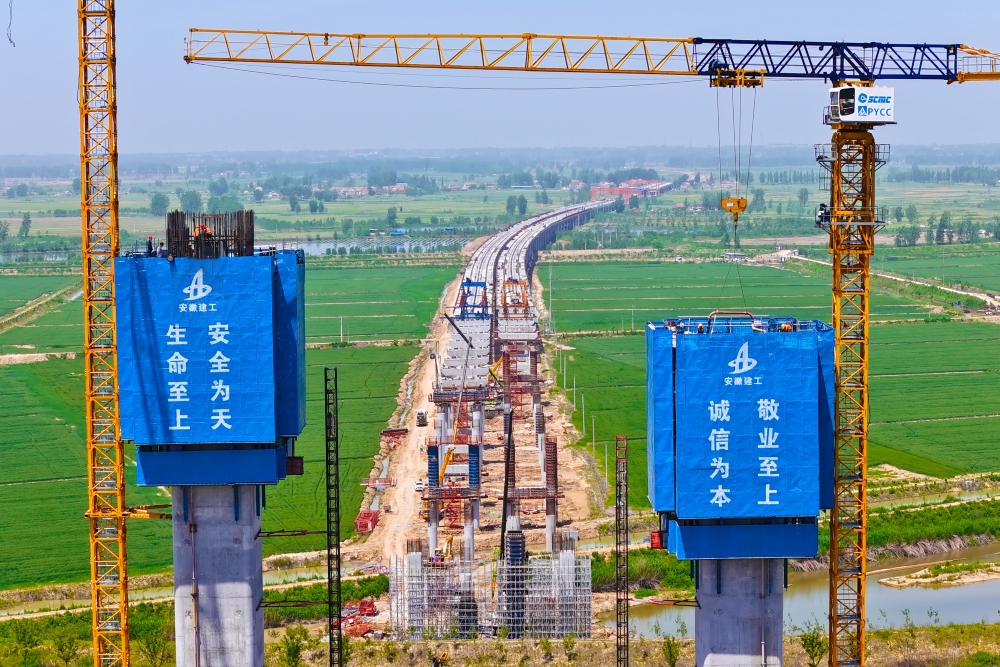 S16合周高速4標東淝河大橋項目全員堅守崗位,搶抓利好天氣,全面推進主橋塔柱節(jié)段澆筑、橋梁墩柱施工和引橋梁板架設(shè)等重要工序。