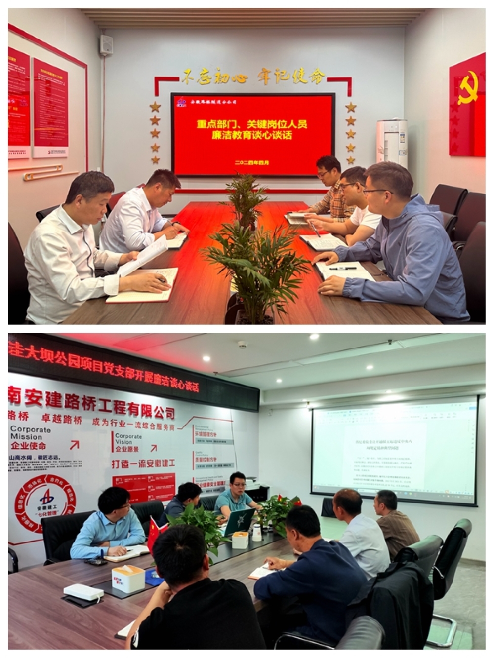 分公司機(jī)關(guān)黨支部、湯洼大壩公園項目黨支部組織開展談心談話廉潔教育,結(jié)合近年來中央紀(jì)委國家監(jiān)委通報的違紀(jì)違法典型案例,要求職工強(qiáng)化嚴(yán)于律己做人、清正廉潔做事的責(zé)任擔(dān)當(dāng),在工作和生活中守住廉潔自律“準(zhǔn)繩”。