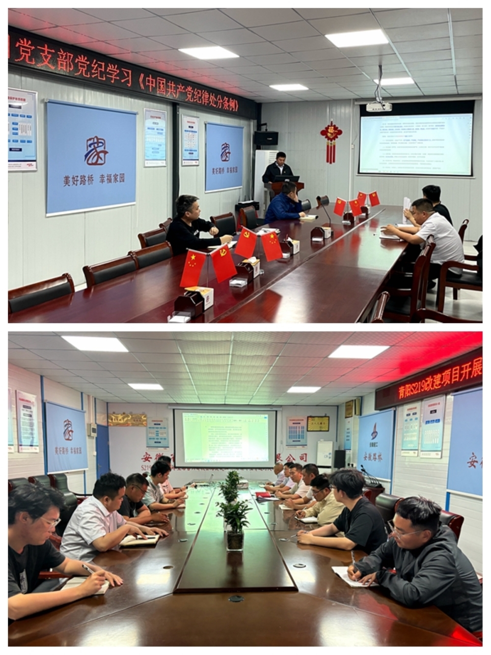S358改建W10標(biāo)項目黨支部、青陽S219改建項目黨支部利用“三會一課”、主題黨日活動等載體,逐條逐句學(xué)習(xí)《中國共產(chǎn)黨紀(jì)律處分條例》,持續(xù)增強(qiáng)學(xué)習(xí)的針對性、實(shí)效性。