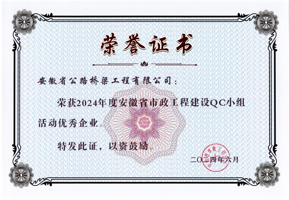 近日,在合肥開展的安徽省市政工程協(xié)會(huì)2024年度工程建設(shè)優(yōu)秀QC小組活動(dòng)交流會(huì)上,公司多項(xiàng)QC課題成功斬獲優(yōu)秀QC成果獎(jiǎng)。同時(shí),公司榮獲了2024年度安徽省市政工程建設(shè)QC小組活動(dòng)優(yōu)秀企業(yè)稱號(hào)。