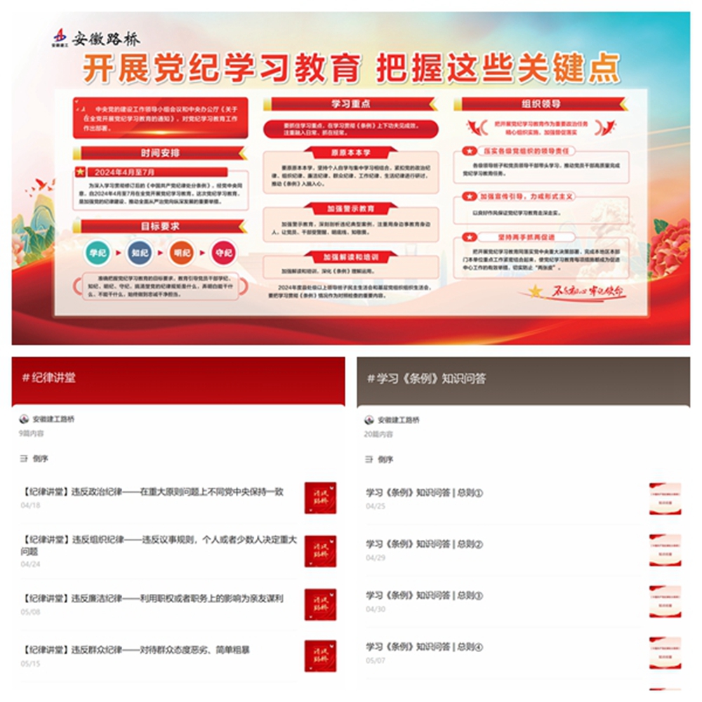 黨紀(jì)學(xué)習(xí)教育開展以來,公司黨委高度重視宣傳引導(dǎo)、氛圍提升。為擴(kuò)大宣傳引導(dǎo)的接觸面,公司黨委統(tǒng)籌制定發(fā)布了黨紀(jì)學(xué)習(xí)教育展板。同時,立足“清風(fēng)路橋”建設(shè),加大宣傳力度,綜合運用官網(wǎng)、官微,設(shè)立“紀(jì)律講堂”“學(xué)習(xí)《條例》知識問答”等專欄,累計推出黨紀(jì)學(xué)習(xí)教育相關(guān)報道和學(xué)習(xí)材料80余篇次,做到“每日推送”。組織全體黨員職工參加公司內(nèi)網(wǎng)《條例》線上知識測試,以考助學(xué)、以訓(xùn)促學(xué),鞏固學(xué)習(xí)成果,檢驗學(xué)習(xí)成效,在全公司營造學(xué)紀(jì)、知紀(jì)、明紀(jì)、守紀(jì)的良好氛圍。各級黨組織通過“三會一課”等方式開展專題學(xué)習(xí)230余次,受教育黨員、職工累計超2500人次。