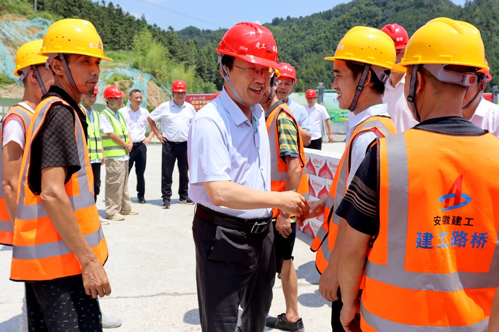 8月6日上午,建工股份黨委副書記、副董事長、總經(jīng)理李有貴一行,赴涇青高速項目調(diào)研并開展“送清涼”慰問。
