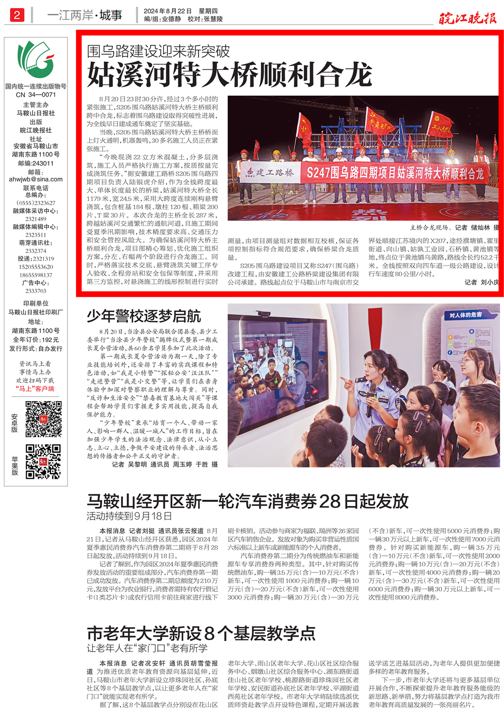 S247(圍烏路)改建工程全長52公里,是馬鞍山市東部區(qū)域重要的南北方向快速通道,也是該市“五橫六縱二聯(lián)”主干公路網(wǎng)中的縱六線。項目建成通車后,將進一步加強馬鞍山與各城鎮(zhèn)之間的溝通聯(lián)結(jié),提高綜合運輸網(wǎng)的服務(wù)水平,帶動大青山等周邊旅游資源的開發(fā),促進與南京都市圈及長三角核心區(qū)域人流、物流、資金流、信息流的充分流動,對加快推進寧馬一體化、等高對接南京都市圈,推動沿線地區(qū)乃至全市經(jīng)濟高質(zhì)量發(fā)展具有重要意義。