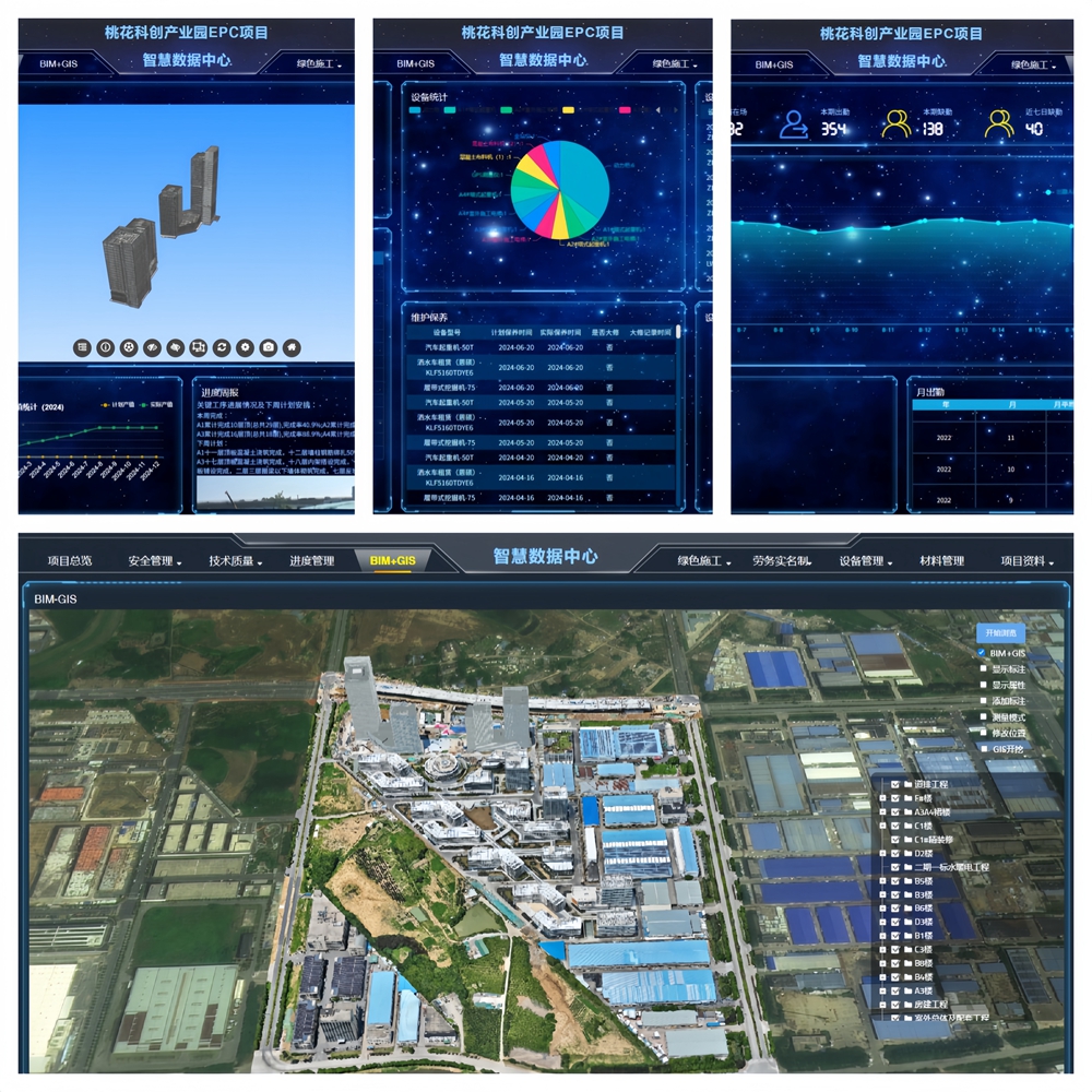 桃花科創(chuàng)園項目堅持推廣應(yīng)用BIM和信息化數(shù)字技術(shù),在建設(shè)之初就定下實現(xiàn)“一網(wǎng)、一云、一模型”的建設(shè)目標(biāo)。即全過程依靠BIM模型搭載數(shù)據(jù)信息,實現(xiàn)園區(qū)運行狀態(tài)立體監(jiān)測全聯(lián)網(wǎng),匯聚共享園區(qū)信息云資源,實現(xiàn)一模到底。基于“智慧工地”管理系統(tǒng),項目采取“監(jiān)控+BIM+GIS”可視化監(jiān)控,迅速、精準(zhǔn)地通過BIM模型中相應(yīng)位置監(jiān)控,檢查和定位現(xiàn)場違規(guī)作業(yè),并采用IP廣播鏈接進行應(yīng)急指揮調(diào)度,結(jié)合AI監(jiān)控、智能安全帽等設(shè)備,實現(xiàn)違規(guī)行為自動預(yù)警提醒,降低安全風(fēng)險。項目相繼榮獲省住建廳“智慧工地”試點項目以及“合肥市智能建造試點工程”。