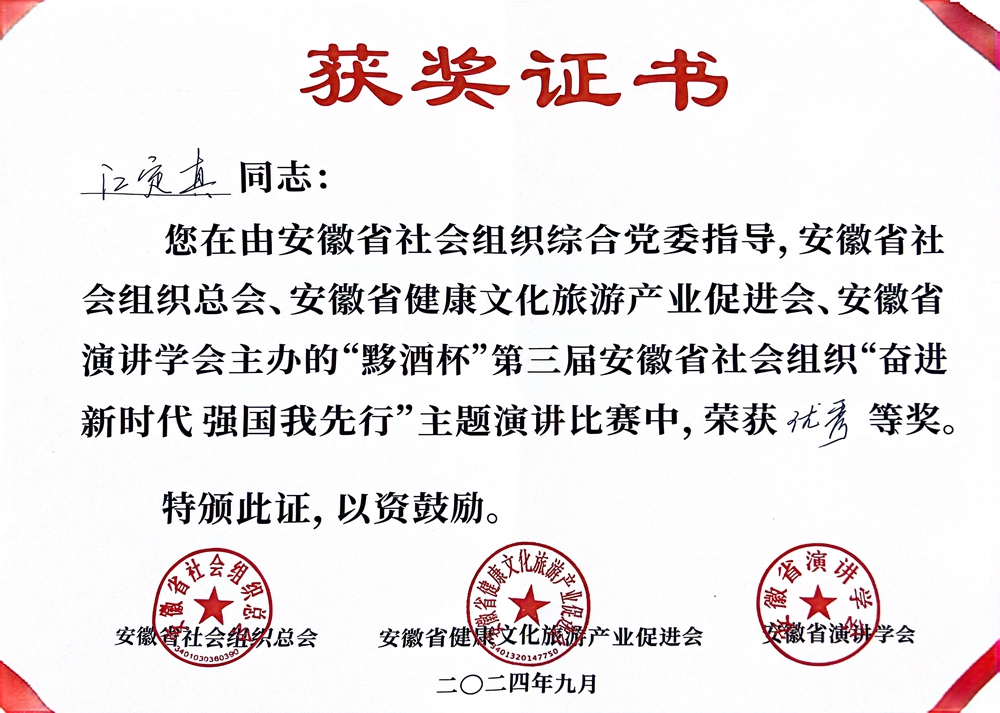 公司在第三屆安徽省社會(huì)組織“奮進(jìn)新時(shí)代 強(qiáng)國我先行”主題演講比賽中獲得佳績