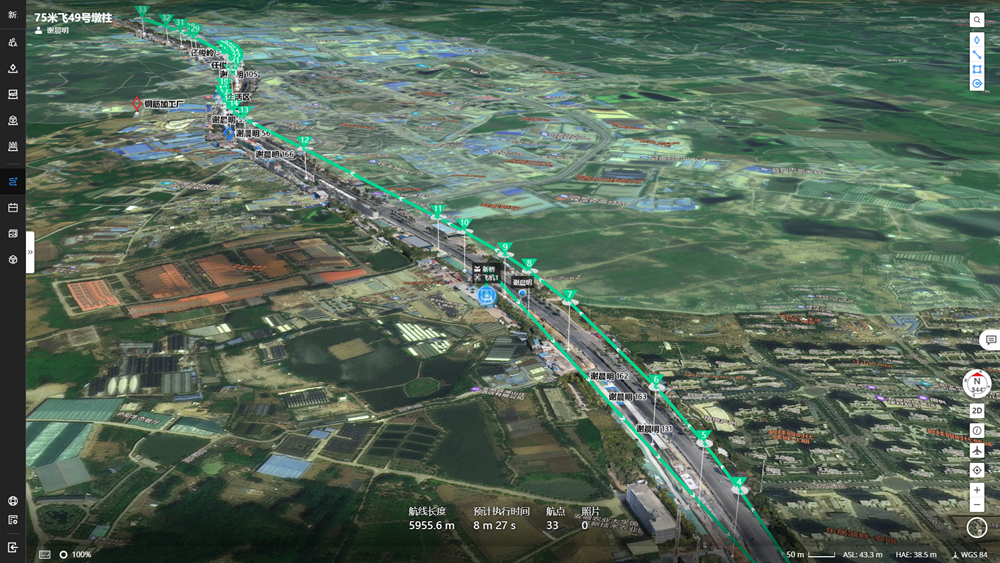 質(zhì)量是工程的生命線。無人機(jī)巡檢系統(tǒng),為質(zhì)量安全擦亮智慧“雙眼”?!拔覀儼褵o人機(jī)巡檢與GIS+BIM技術(shù)相結(jié)合,對項(xiàng)目全線每月更新GIS數(shù)據(jù),形成虛實(shí)互聯(lián)的電子沙盤,真實(shí)還原現(xiàn)場工程建設(shè)場景?!庇嗝骶榻B,操控人員僅需遠(yuǎn)程下達(dá)巡檢任務(wù),即可實(shí)現(xiàn)起飛、巡檢、降落、回收、充電、數(shù)據(jù)上傳等一系列自動(dòng)操作,同時(shí)集成測量分析、重要部位重點(diǎn)標(biāo)注等功能,自動(dòng)巡檢無人值守、自動(dòng)作業(yè),還支持夜間紅外巡邏,“方寸屏幕間即可窺見施工全線場景。”