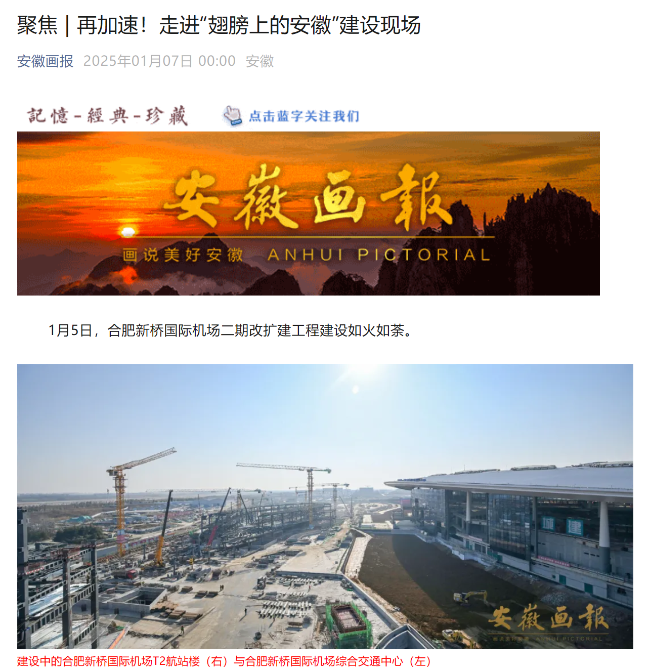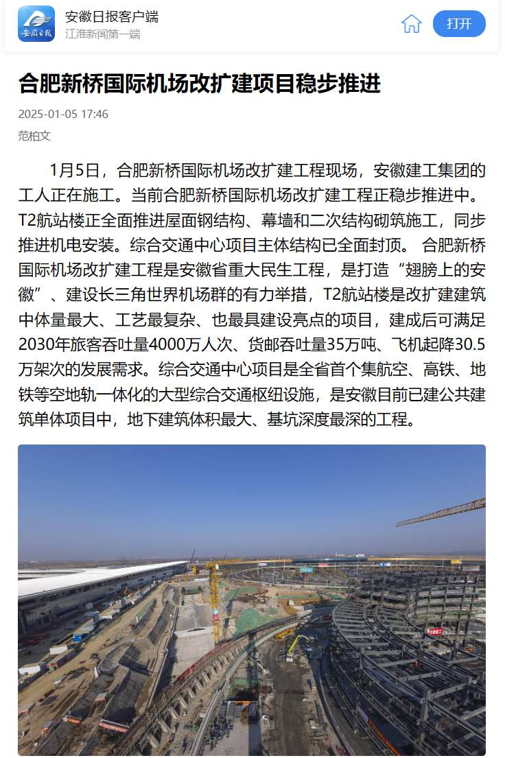 【名媒聚焦】安徽日?qǐng)?bào)、合肥新聞聯(lián)播等省市主流媒體關(guān)注報(bào)道合肥新橋國(guó)際機(jī)場(chǎng)綜合交通中心項(xiàng)目