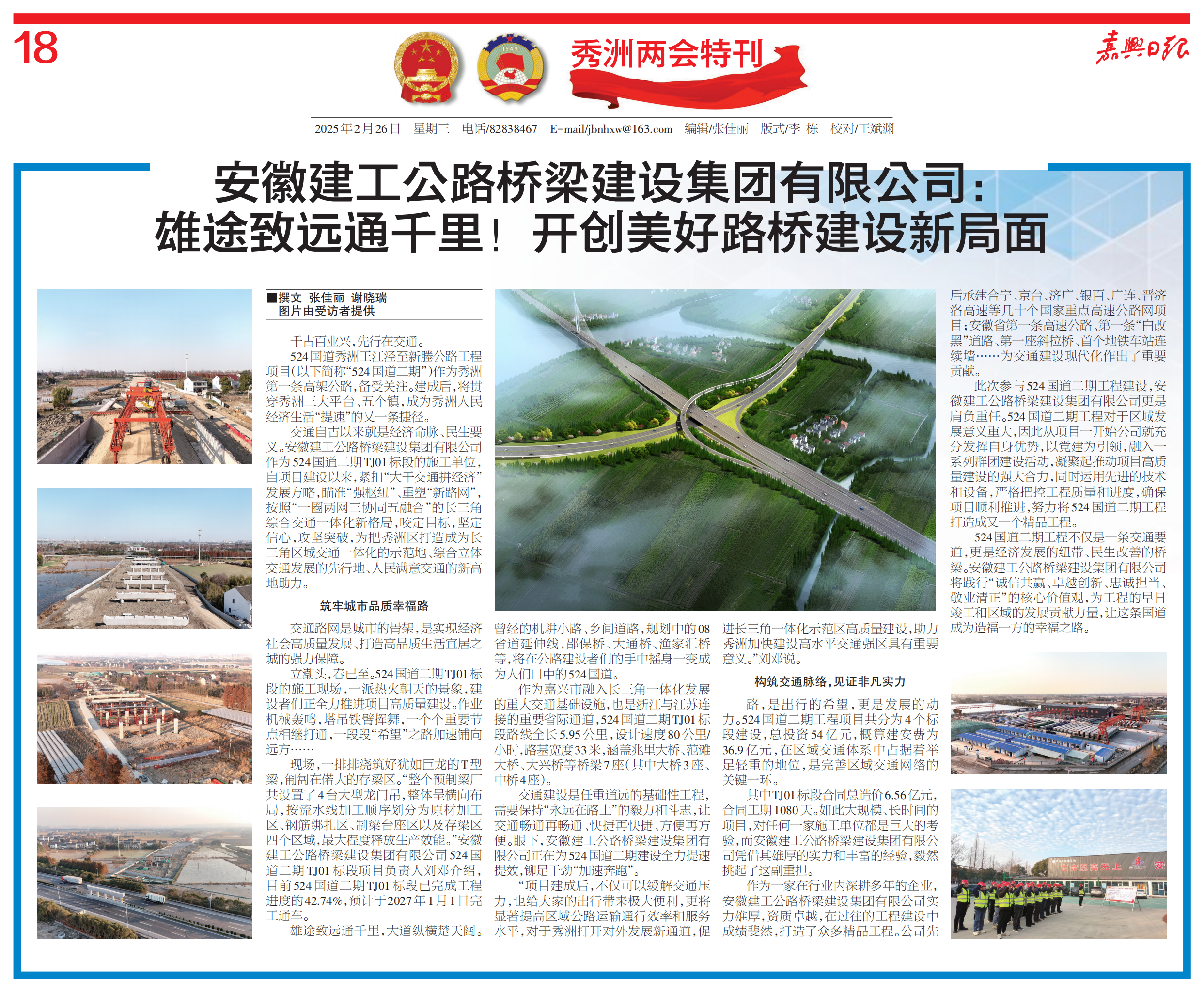 【名媒聚焦】嘉興日報:安徽建工公路橋梁建設(shè)集團(tuán)有限公司——雄途致遠(yuǎn)通大道!開創(chuàng)美好建工路橋建設(shè)新局面