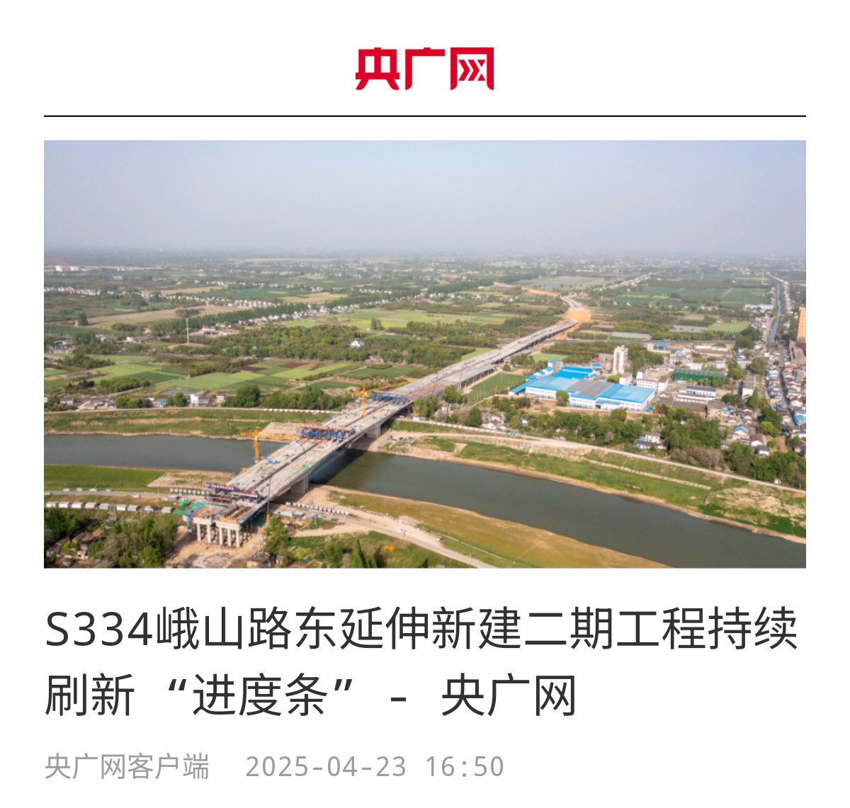 【名媒聚焦】央廣網(wǎng):S334峨山路東延伸新建二期工程持續(xù)刷新“進(jìn)度條”