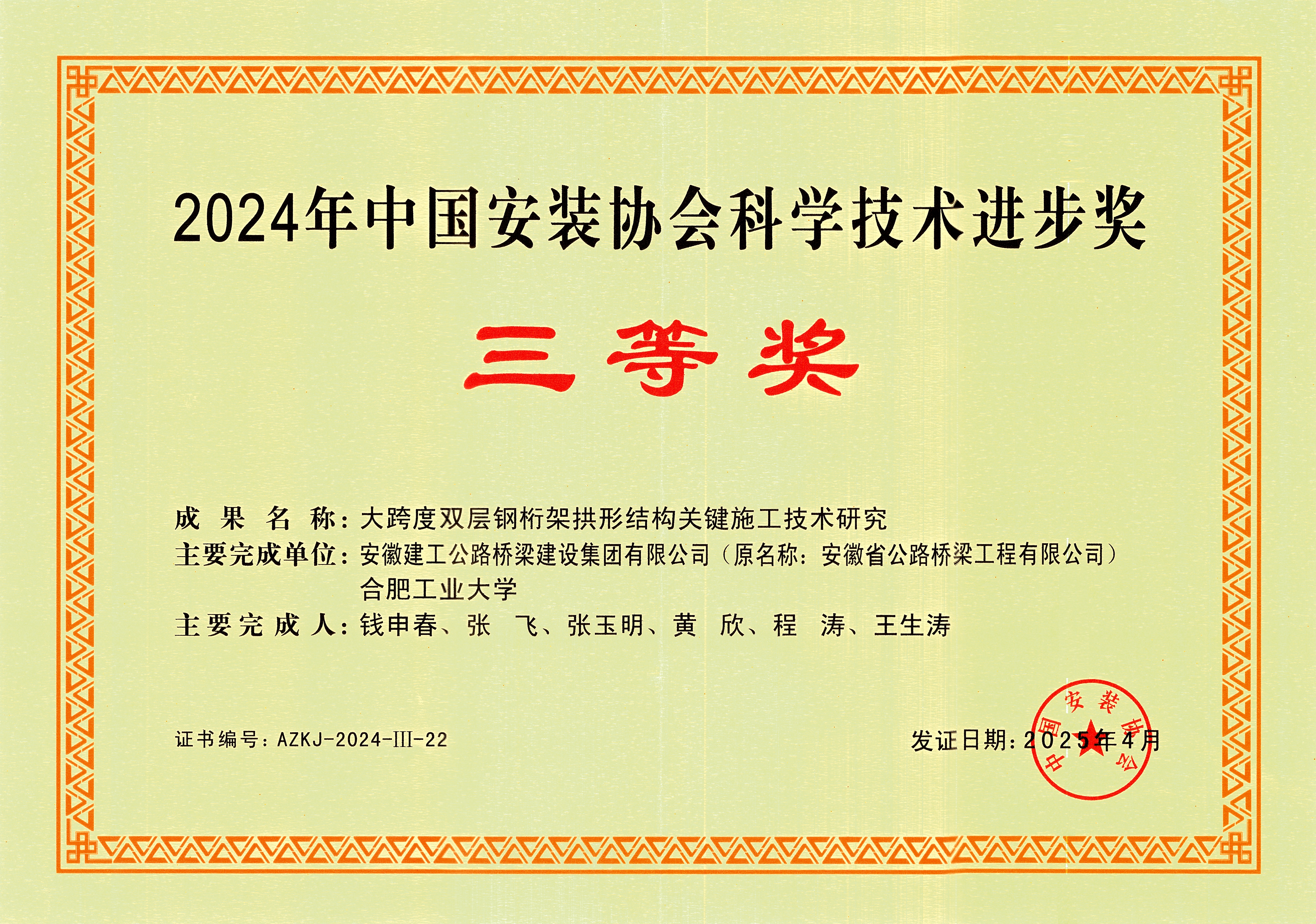 卓越創(chuàng)新 | 公司榮獲2024年中國(guó)安裝協(xié)會(huì)科學(xué)技術(shù)進(jìn)步獎(jiǎng)三等獎(jiǎng)