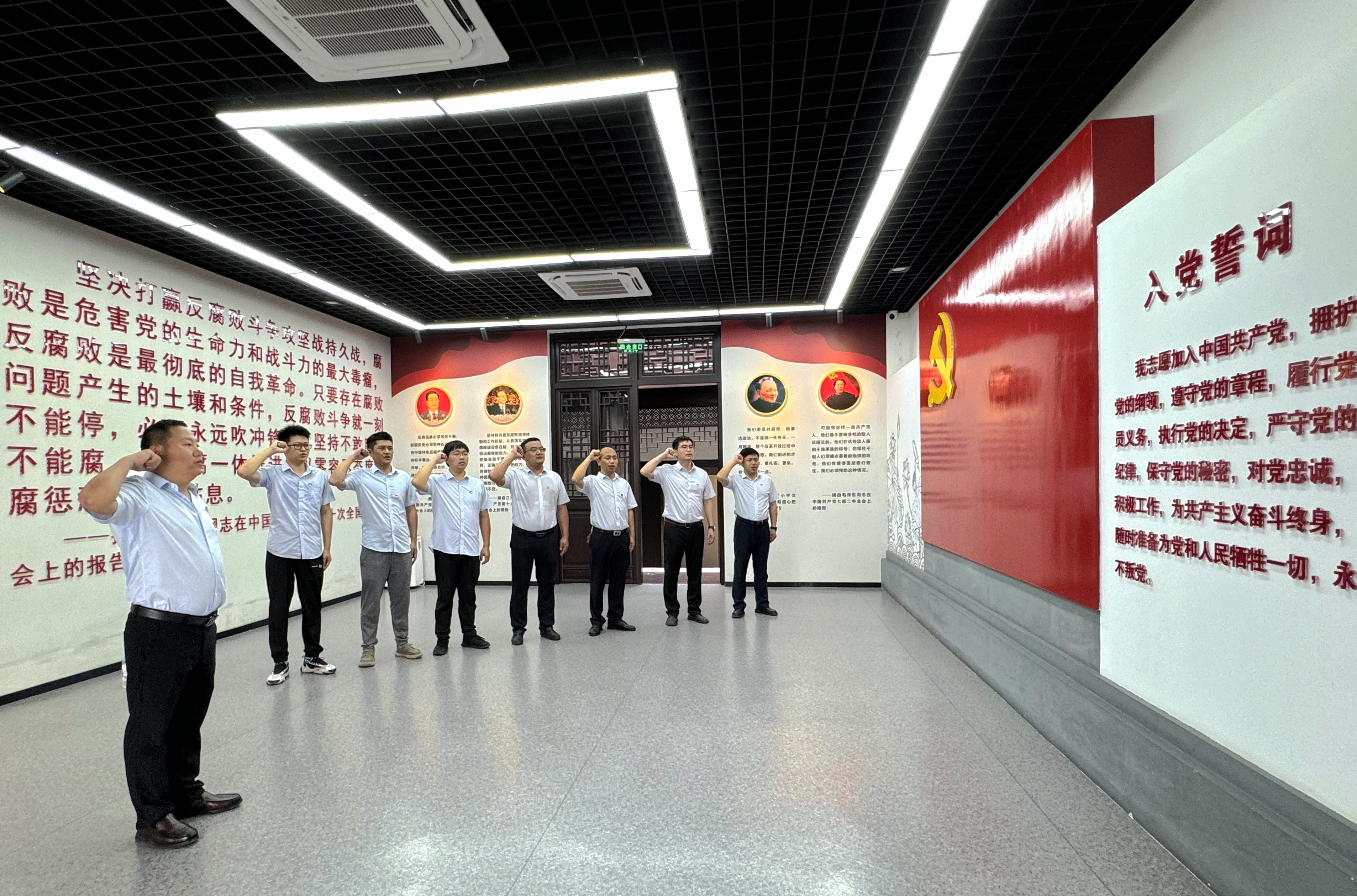6月26日,涇青高速04標(biāo)項目黨支部與路面專業(yè)化服務(wù)中心黨支部前往歙縣廉政三示教育基地,聯(lián)合開展“聯(lián)學(xué)共建謀發(fā)展,勠力同心建新功”主題黨日活動,在講解人員引導(dǎo)下參觀展館,并重溫入黨誓詞。