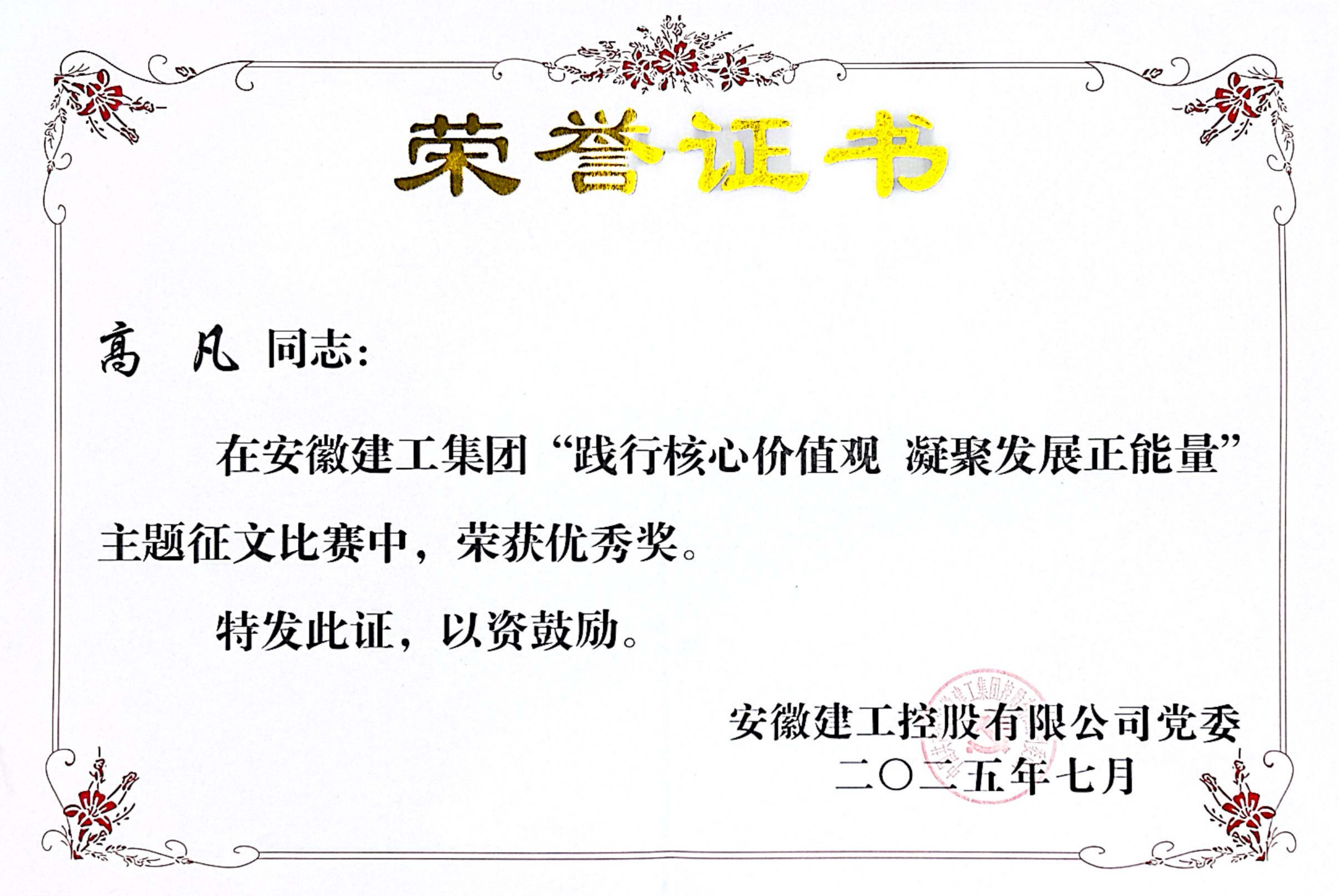 近日,集團“踐行核心價值觀,凝聚發(fā)展正能量”主題征文比賽結(jié)果公布,公司報送的多個作品在數(shù)十篇優(yōu)秀作品中脫穎而出。其中,合肥分公司趙小龍同志作品《踐行核心價值觀,織就立體交通新篇章——安徽建工合肥新橋機場綜合交通中心建設(shè)紀實》斬獲一等獎,公路一公司丁自亮同志作品《戎裝換工服 丹心映初心——一名退役軍人的核心價值觀踐行之路》、橋梁公司高凡同志作品《經(jīng)緯縱橫處 燈火照長路——建工價值觀的泥土與鋼》榮獲優(yōu)秀獎。