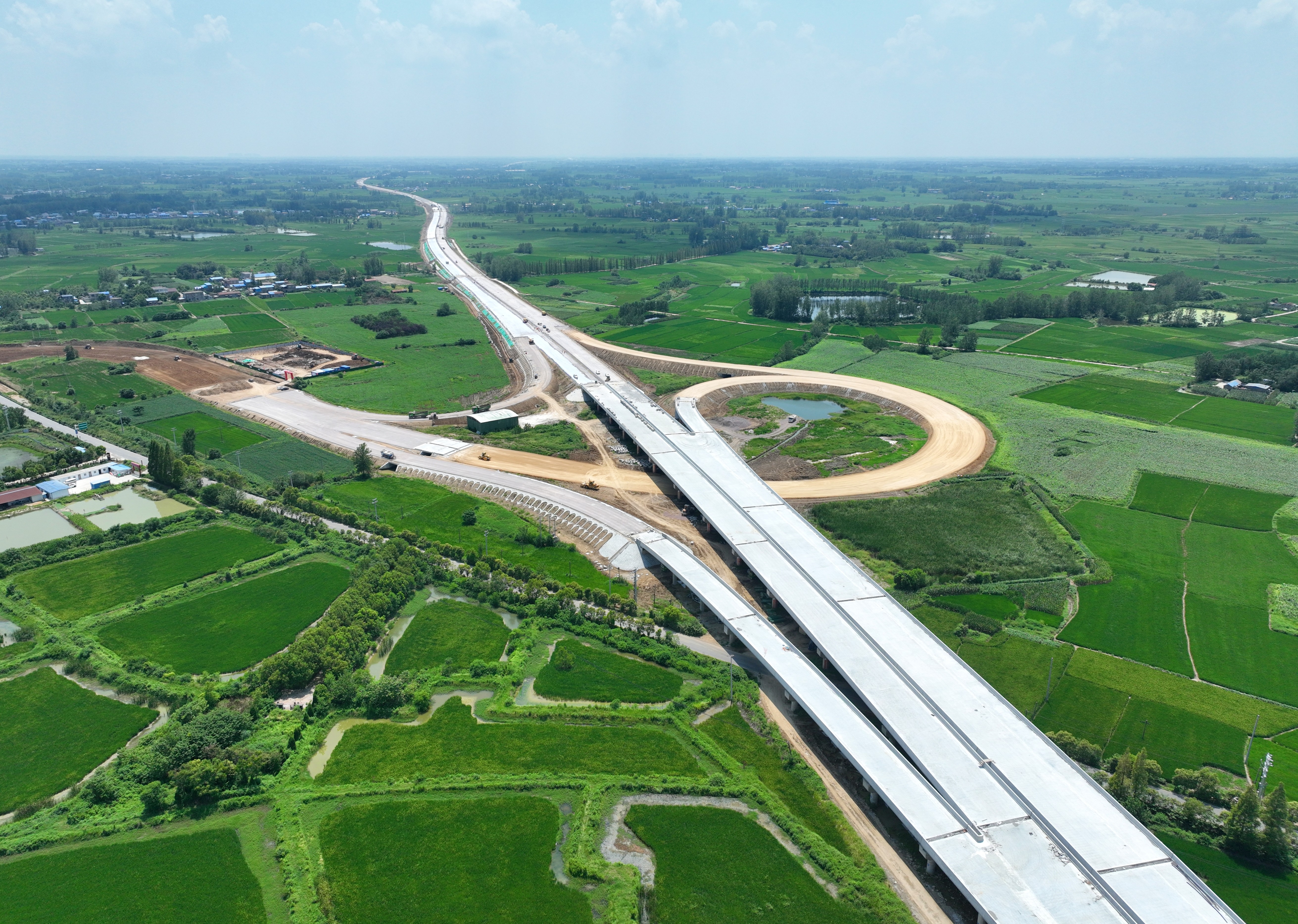面對軟基、高填方、涉路協(xié)調(diào)難等多重挑戰(zhàn),項(xiàng)目優(yōu)化架梁方案,采用“動態(tài)交通導(dǎo)改+分時(shí)段施工”模式,最大限度減少對地方路網(wǎng)的通行影響,兩座互通立交已于6月底實(shí)現(xiàn)貫通。目前,項(xiàng)目控制性工程路基工程主線施工基本結(jié)束,正迅速推進(jìn)防排水等附屬工程施工,已完成合同工程量96%,朝著9月交工驗(yàn)收目標(biāo)全速沖刺。
