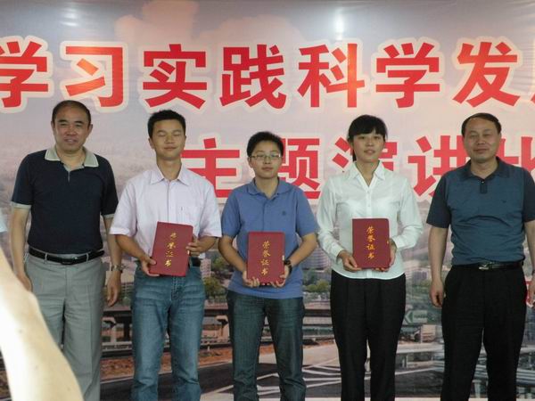 公司參加集團(tuán)科學(xué)發(fā)展觀活動(dòng)主題演講比賽獲佳績(jī) 發(fā)布時(shí)間:2009年05月20日 來源: 發(fā)布人: 作者: 瀏覽:5501次 5月11日下午,安徽建工集團(tuán)公司學(xué)習(xí)實(shí)踐科學(xué)發(fā)展觀活動(dòng)主題演講比賽在公司七樓會(huì)議室舉行,公司員工王晨晨、程德國(guó)兩位同志都取得三等獎(jiǎng)的好成績(jī)。