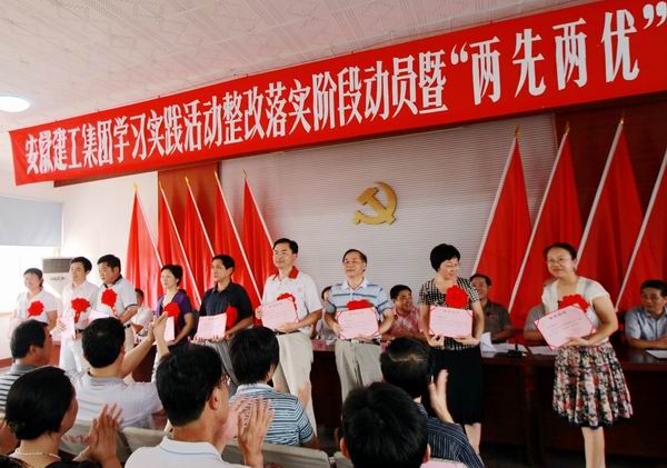 此次獲得集團(tuán)先進(jìn)稱(chēng)號(hào)的集體、個(gè)人具體獲獎(jiǎng)情況是:公司黨委榮獲安徽建工集團(tuán)2008年度“先進(jìn)基層黨委”稱(chēng)號(hào),橋梁分公司黨支部榮獲安徽建工集團(tuán)2008年度“先進(jìn)黨支部”稱(chēng)號(hào),公司高界高速公路改建工程06標(biāo)項(xiàng)目、公司新蚌埠路與北二環(huán)路立交工程項(xiàng)目、公司合肥南一環(huán)暢通工程G標(biāo)段項(xiàng)目分別榮獲安徽建工集團(tuán)“黨員先鋒號(hào)工程”稱(chēng)號(hào),陳光磊、劉昀榮獲安徽建工集團(tuán)2008年度“優(yōu)秀黨務(wù)工作者”稱(chēng)號(hào),沈壯、錢(qián)申春、劉冬榮獲安徽建工集團(tuán)2008年度“優(yōu)秀共產(chǎn)黨員”稱(chēng)號(hào)。