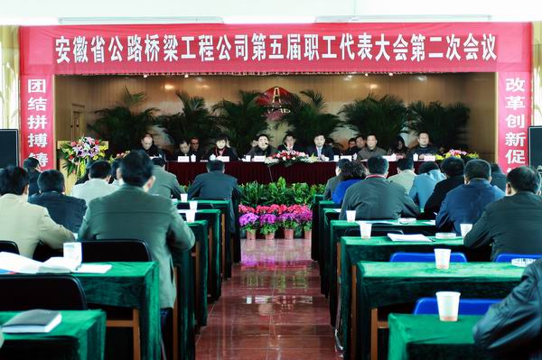 上午8:30,在莊嚴(yán)的國歌聲中,第五屆職工代表大會第二次會議正式開幕。會議由公司黨委委員、副總經(jīng)理、總工程師彭申凱主持。公司總經(jīng)理汪衛(wèi)東在會上作了題為《夯實(shí)管理基礎(chǔ),拓展發(fā)展空間,為推動安徽路橋快速發(fā)展而努力奮進(jìn)》的工作報(bào)告。報(bào)告回顧總結(jié)了2009年工作。2009年是新世紀(jì)以來我國經(jīng)濟(jì)發(fā)展最為困難的一年。公司面對復(fù)雜快變的市場環(huán)境,在集團(tuán)公司的科學(xué)指導(dǎo)下,主動適應(yīng)市場,搶抓機(jī)遇,呈現(xiàn)了平穩(wěn)較快發(fā)展的良好局面,譜寫了實(shí)現(xiàn)新崛起的動人篇章。公司先后榮獲安徽省建筑業(yè)企業(yè)五十強(qiáng)、合肥市委市政府文明單位等市廳級以上集體榮譽(yù)11項(xiàng),形象大幅提升。全年新簽合同額14.7億元,同比增長20%,經(jīng)營業(yè)績再創(chuàng)新高。完成總產(chǎn)值約11.08億元,同比增長10.8%,施工產(chǎn)值再上新臺階。主營業(yè)務(wù)收入8.34億元,實(shí)現(xiàn)利潤總額530.3萬元,同比增長35.22%,資產(chǎn)保值增長率106.5%,經(jīng)濟(jì)效益穩(wěn)步增長。創(chuàng)“黃山杯”、“建工杯”各1項(xiàng),各類科技進(jìn)步獎(工法)8項(xiàng),創(chuàng)建安全文明示范工地5個,連續(xù)三年無重大安全和質(zhì)量事故。