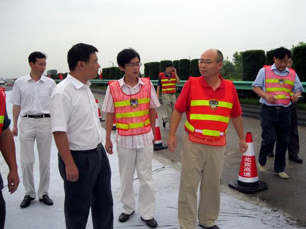 省交投集團(tuán)領(lǐng)導(dǎo)一行來到我部施工前場,在認(rèn)真聽取了我部關(guān)于工期、進(jìn)度及質(zhì)量的詳細(xì)匯報(bào)后,視察了原路面銑刨、局部水穩(wěn)破除或銑刨、混凝土澆筑、瀝青攤鋪等工作的施工進(jìn)展情況。省交投集團(tuán)領(lǐng)導(dǎo)指出,連續(xù)陰雨天氣給施工帶來了一定影響,我們?cè)诒U鲜┕みM(jìn)度的同時(shí)也要保證施工質(zhì)量。看到前場施工安全標(biāo)牌、錐標(biāo)擺放規(guī)范、有序,施工人員安全裝備齊全,視察組表示了滿意。視察小組說:“安全”和“質(zhì)量”始終是我們施工工作的排頭兵,它們之間互相依存、相輔相成,共同關(guān)系著我們施工工作的命脈,我們要始終緊抓不放。我項(xiàng)目經(jīng)理薛斌表示,在業(yè)主領(lǐng)導(dǎo)的大力關(guān)懷和正確指導(dǎo)下,我們一定會(huì)再接再厲,克服各種不利因素,“保安全”、“抓質(zhì)量”、“搶工期”,順利完成施工任務(wù)。