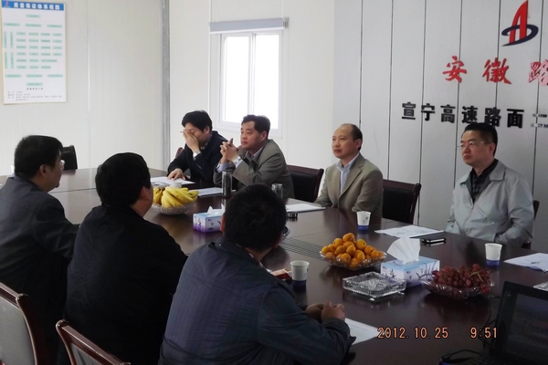 在該項(xiàng)目召開的總結(jié)交流會上,趙總一行聽取了該項(xiàng)目負(fù)責(zé)人關(guān)于前期工作進(jìn)展總體情況及標(biāo)準(zhǔn)化建設(shè)成果的匯報。對于宣寧路面02標(biāo)項(xiàng)目選址、場地規(guī)劃建設(shè)、文明施工以及企業(yè)文化建設(shè)等方面工作,趙總一行表示了肯定,同時對項(xiàng)目下步重點(diǎn)工作提出了要求和期望。