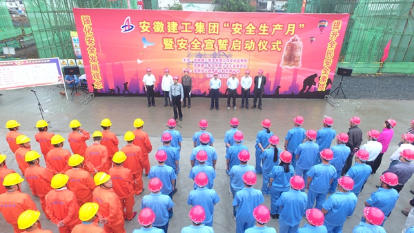 在集團(tuán)公司工會(huì)主席徐曉光的帶領(lǐng)下,所屬各單位領(lǐng)導(dǎo)、安全管理人員,郎溪路項(xiàng)目全體管理人員及一線工人約200人舉起右手,鄭重宣誓:“我是一名安徽建工人,我鄭重宣誓,時(shí)刻注意安全,遵守安全法規(guī)。履行安全職責(zé),提高安全技能。杜絕三違現(xiàn)象,保證四不傷害。強(qiáng)化紅線意識(shí),促進(jìn)安全發(fā)展。為了家人幸福、企業(yè)發(fā)展,誓做建工‘安全人’”。莊嚴(yán)的誓詞久久回蕩在項(xiàng)目現(xiàn)場(chǎng),更加堅(jiān)定了全體建工人“強(qiáng)化紅線意識(shí),促進(jìn)安全發(fā)展”的信心和決心。