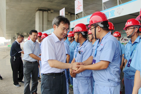 連日以來,高溫酷暑籠罩著江淮大地,但廣大安徽路橋人依然堅守施工一線,揮汗如雨。7月26日上午11時,安徽省住建廳黨組書記、廳長張?zhí)炫?,黨組成員、副廳長吳桂和,副巡視員劉少為一行在集團工會主席徐曉光,公司董事長、黨委書記、總經(jīng)理孫學軍等有關(guān)人員的陪同下,深入合肥阜陽北路高架項目看望慰問一線建設者,叮囑項目部做好防暑降溫工作,切實保障職工身心健康。