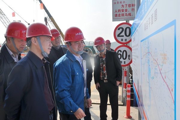集團(tuán)董事長(zhǎng)、黨委書記趙時(shí)運(yùn)等領(lǐng)導(dǎo)視察黃河特大橋施工現(xiàn)場(chǎng)