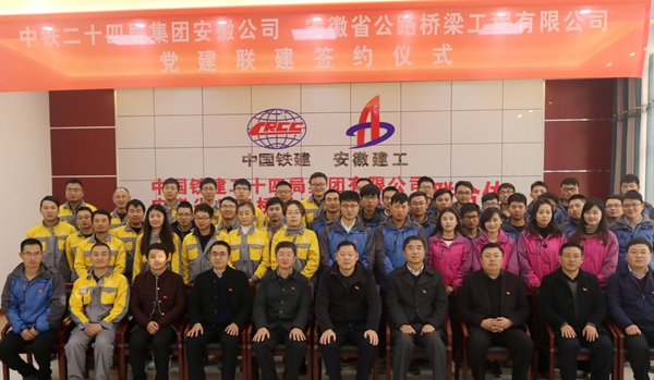 12月12日下午,合肥軌道交通4號(hào)線01標(biāo)聯(lián)合體中鐵二十四局安徽公司項(xiàng)目部黨支部和安徽省路橋公司項(xiàng)目黨支部黨建聯(lián)建簽約儀式隆重舉行。安徽路橋公司黨委書記、董事長、總經(jīng)理孫學(xué)軍,紀(jì)委書記林緒坤,副總經(jīng)理任杰,中鐵二十四局集團(tuán)安徽公司黨委書記房明州,黨委副書記、紀(jì)委書記侯衛(wèi)超等領(lǐng)導(dǎo)出席。