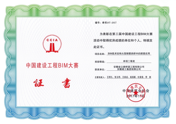 近日,在廈門(mén)召開(kāi)的中國(guó)建設(shè)工程BIM技術(shù)成果經(jīng)驗(yàn)交流會(huì)暨第三屆全國(guó)建設(shè)工程BIM大賽成果展示會(huì)上,由公司選送的《BIM技術(shù)在特大型鋼管拱橋中的探索應(yīng)用》成果,在全國(guó)794項(xiàng)BIM參賽成果中脫穎而出,以優(yōu)異的成績(jī)榮獲“第三屆中國(guó)建設(shè)工程BIM大賽”單項(xiàng)二等獎(jiǎng)。