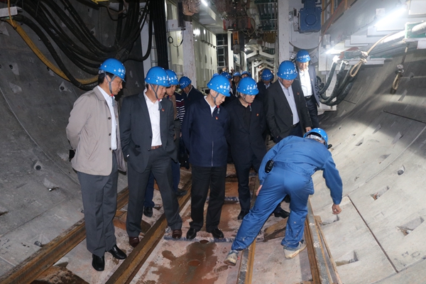 趙書記一行查看方-長區(qū)間盾構(gòu)掘進現(xiàn)場