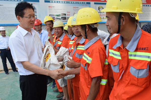 8月3日,淮北市委常委、紀委書記宰學明在市紀委監(jiān)察委和市總工會相關(guān)負責人的陪同下,深入淮北市S101及S254改建工程PPP項目施工現(xiàn)場,看望慰問公司一線參建人員。