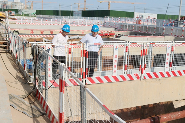 錢總先后來到長寧大道站、創(chuàng)新大道站施工現(xiàn)場,實(shí)地調(diào)研指導(dǎo)工程施工,并詳細(xì)聽取了項(xiàng)目負(fù)責(zé)人對工程進(jìn)度、安全質(zhì)量管控、盾構(gòu)掘進(jìn)施工等情況的工作匯報(bào)。錢總強(qiáng)調(diào),要提前謀劃,精心組織,控制好節(jié)點(diǎn)工期,充分發(fā)揮主觀能動性,安全優(yōu)質(zhì)高效地推進(jìn)項(xiàng)目建設(shè)。