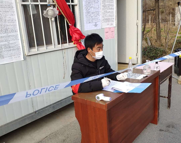 在陜西省柞水縣營盤鎮(zhèn)藥王堂村,陪伴余應(yīng)奇度過春節(jié)的是一把凳子、一張桌子、一面旗幟。余應(yīng)奇是G342合陽段改建工程項目的技術(shù)員。疫情發(fā)生后,他主動請戰(zhàn),數(shù)九寒冬,獨自守住村口的一個交通要道,耐心勸阻過往村民,不漏一車、不漏一人,認真進行登記檢測,認真宣講疫情防控政策和知識,努力為家鄉(xiāng)構(gòu)筑起堅固防線。