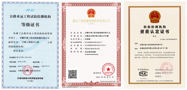 理念成就發(fā)展,堅守鑄就跨越。環(huán)通公司堅持一本藍圖繪到底,從無到有,從弱到強,走過了14年的創(chuàng)業(yè)之路。新時期,隨著全國交通建設領域的大建設大發(fā)展,環(huán)通公司依托安徽建工集團品牌優(yōu)勢,精準定位,搶抓發(fā)展機遇,加快轉(zhuǎn)型升級步伐,實現(xiàn)了高質(zhì)量、可持續(xù)發(fā)展,已經(jīng)成為專業(yè)化從事公路、橋梁、市政、軌道交通、電力等領域技術服務的綜合性試驗檢測單位,擁有交通部綜合乙級公路工程試驗資質(zhì)、計量認證資質(zhì)和省建設廳見證取樣資質(zhì)。