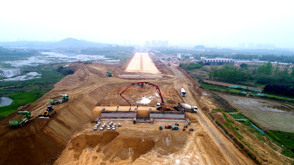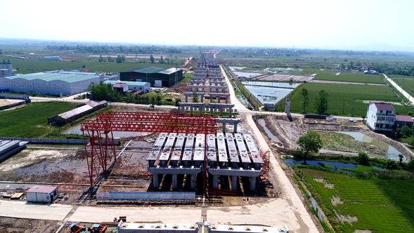 3月25日,羅埠河特大橋主橋最后一個承臺歷時11個小時的澆筑,順利完成,自此進(jìn)入地面以上施工。4月11日,徽州大道(廬江段)項目全線首片箱梁順利架設(shè),較業(yè)主下達(dá)的架梁工期提前了半個多月,施工進(jìn)展再次取得突破,標(biāo)志著項目全面進(jìn)入上部結(jié)構(gòu)施工階段。
