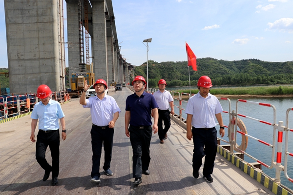 錢總深入施工現(xiàn)場,實地察看了項目工程進(jìn)展、安全質(zhì)量管控、現(xiàn)場施工組織等情況,詳細(xì)詢問了主橋合攏段工期節(jié)點計劃并就進(jìn)一步加快項目建設(shè)進(jìn)度進(jìn)行了部署安排。在項目南引橋,錢總詢問了安全管控手段、進(jìn)度安排計劃、質(zhì)量保證措施。他強調(diào),黃河特大橋項目位于小浪底庫區(qū)內(nèi),項目部要提高站位,進(jìn)一步做好綠色文明施工,把項目建設(shè)對黃河生態(tài)環(huán)境的影響降到最低,彰顯國企擔(dān)當(dāng)。