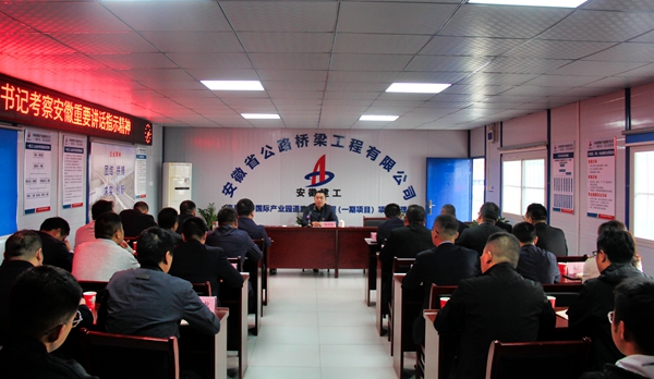 在全省上下深入學習宣傳貫徹習近平總書記考察安徽重要講話指示精神之際,按照集團黨委統一部署要求,結合領導班子成員黨支部工作聯系點制度,10月16日下午,公司黨委副書記、總經理錢申春深入道路分公司壽縣新橋產業(yè)園道路擴展工程項目部宣講習近平總書記考察安徽重要講話指示精神。他強調,要充分認識習近平總書記考察安徽重要講話指示精神的重大意義,推動學習宣傳貫徹工作走深走實,確保習近平總書記重要講話精神在項目一線得到全面貫徹落實,進而轉化為推動項目生產經營管理的強大動力和生動實踐。