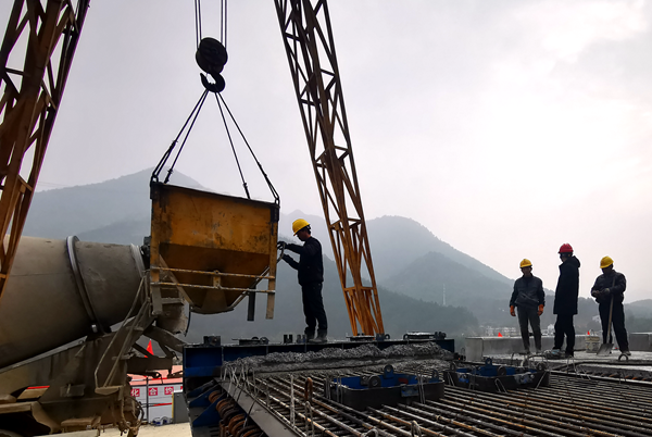 在全長(zhǎng)8.18公里的施工線上,荊竹坑大橋、2#拌和站、2#預(yù)制梁場(chǎng)及鋼筋加工場(chǎng)等多個(gè)施工點(diǎn)同時(shí)多點(diǎn)作業(yè),多個(gè)工序同時(shí)推進(jìn)。其中,荊竹坑大橋左線2#橋橋臺(tái)施工不間斷;2#拌和站春節(jié)期間共完成砼量320方;2#預(yù)制梁場(chǎng)施工人員全部就地過(guò)年,加班加點(diǎn)作業(yè),保證每日澆筑3-4片預(yù)制橋梁板,春節(jié)期間完成近30片梁板,為全線橋梁梁板架設(shè)奠定有力基礎(chǔ)。